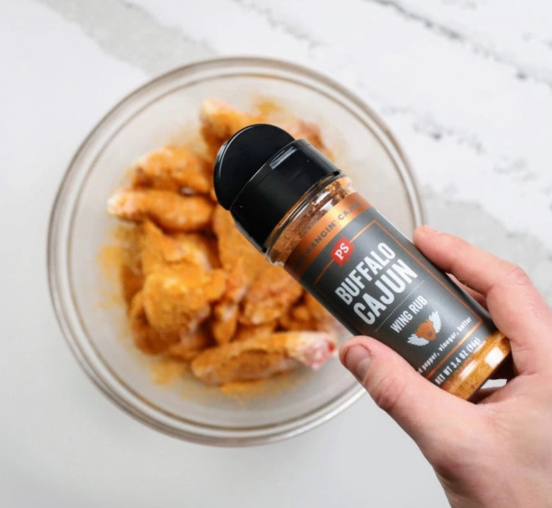The Buffalo Cajun Wing Rub delivers bold heat with classic Buffalo tang and Cajun spice depth. This wing rub blends red pepper, vinegar notes, and buttery flavor for crave-ready wings. Each shake coats evenly and builds flavor fast. As a result, wings develop rich color and bold aroma during cooking.