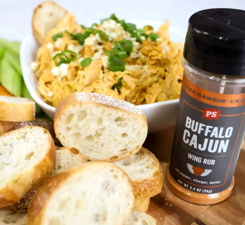 - Buffalo-style heat with balanced Cajun spice