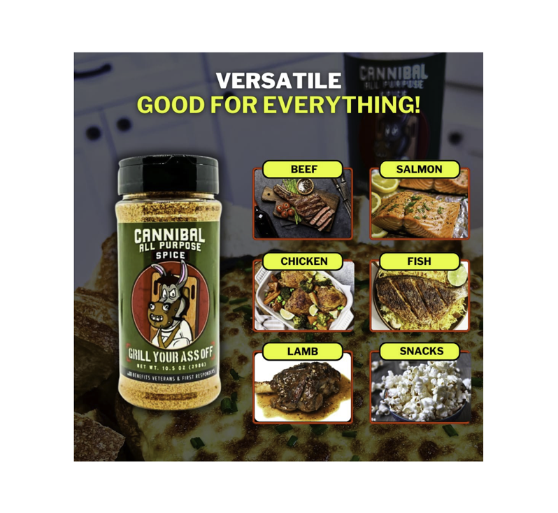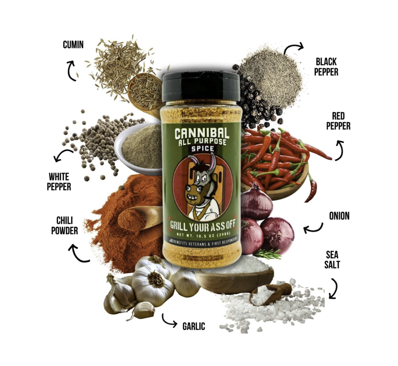Cannibal All Purpose Spice delivers bold, savory flavor with a balanced blend of spices. Perfect for meats, vegetables, and more, it enhances every dish with smoky depth and everyday versatility.