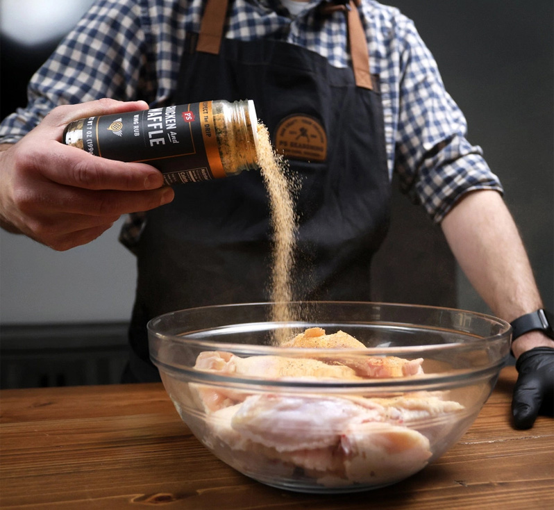 Use this chicken and waffle seasoning on wings, drumsticks, thighs, and tenders. The rub adheres well to raw or oiled skin. Therefore, flavor stays locked in while meat remains juicy. Sweet notes balance savory spice without overpowering chicken.