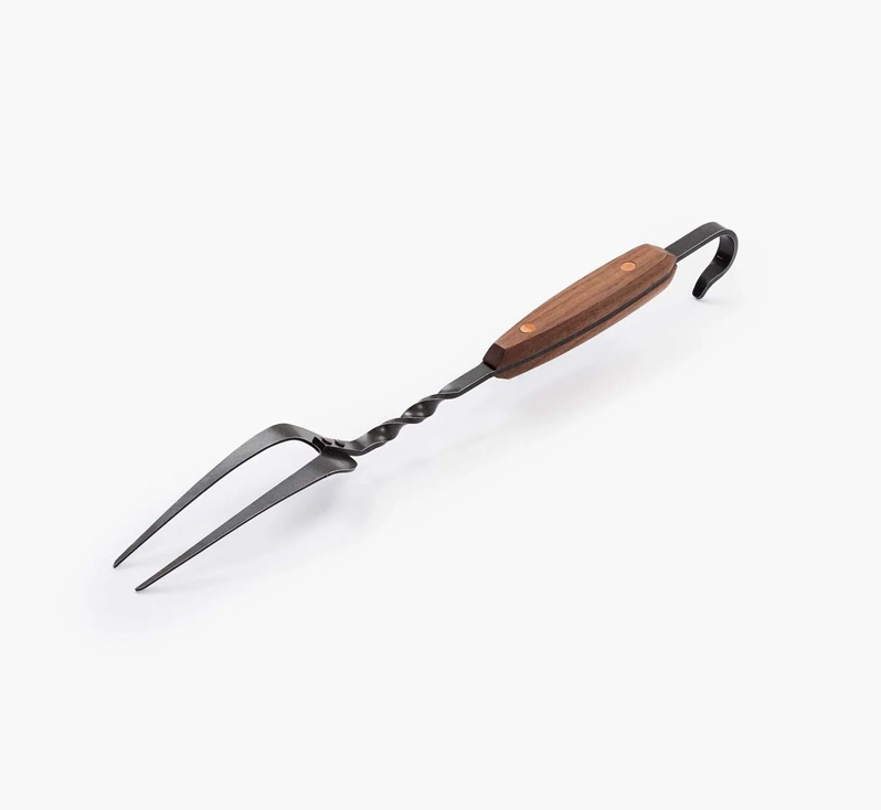 The Cowboy Grill Carving Fork delivers rugged outdoor control for grilling and open-fire cooking. Its forged steel construction offers impressive strength during long cooking sessions. The hardwood handle provides a secure, comfortable grip every time you lift or rotate meat. Long dual tines hold meat firmly and help you make clean, confident cuts without losing control over large portions.