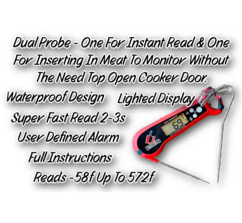 The Digital Meat Thermometer with Dual Probes gives grillers, BBQ lovers, and home cooks total temperature control. It reads internal meat temperatures quickly and accurately. Therefore, you can cook meats to perfect doneness every time. The dual-probe technology allows one probe for instant checking and another for monitoring long cooks. Additionally, the rugged and waterproof body makes this thermometer reliable outdoors and indoors.