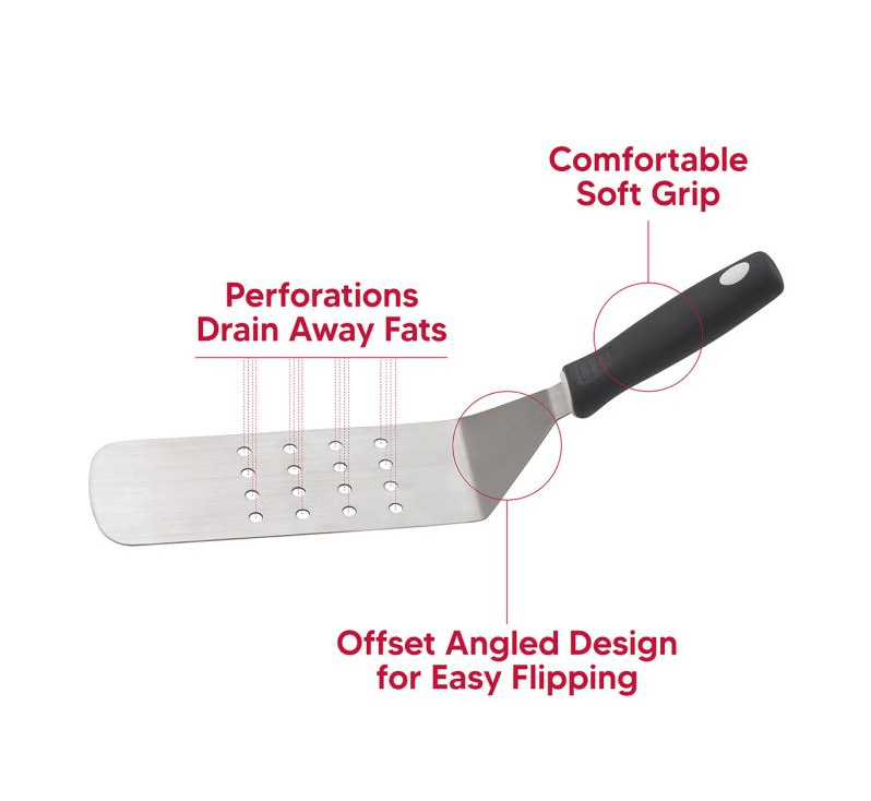 You will drain unwanted fats easily because the perforated blade releases extra grease. The HIC Kitchen Burger Turner supports confident grilling for home cooks and backyard BBQ hosts. Use this turner for burgers, chicken, fish, and vegetables on indoor or outdoor grills. The soft handle stays comfortable during high heat cooking.