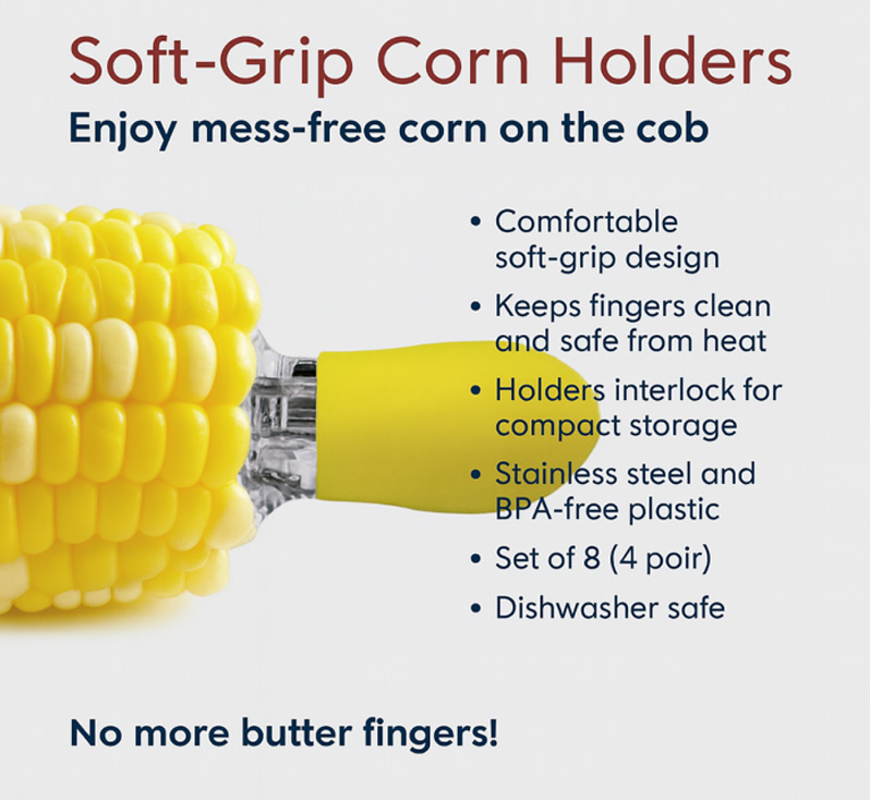 Finally, enjoy a cleaner way to serve corn with a tool that protects your hands. The yellow handles add color and help guests identify their corn. You will appreciate the durable construction and secure fit every time you serve fresh corn.