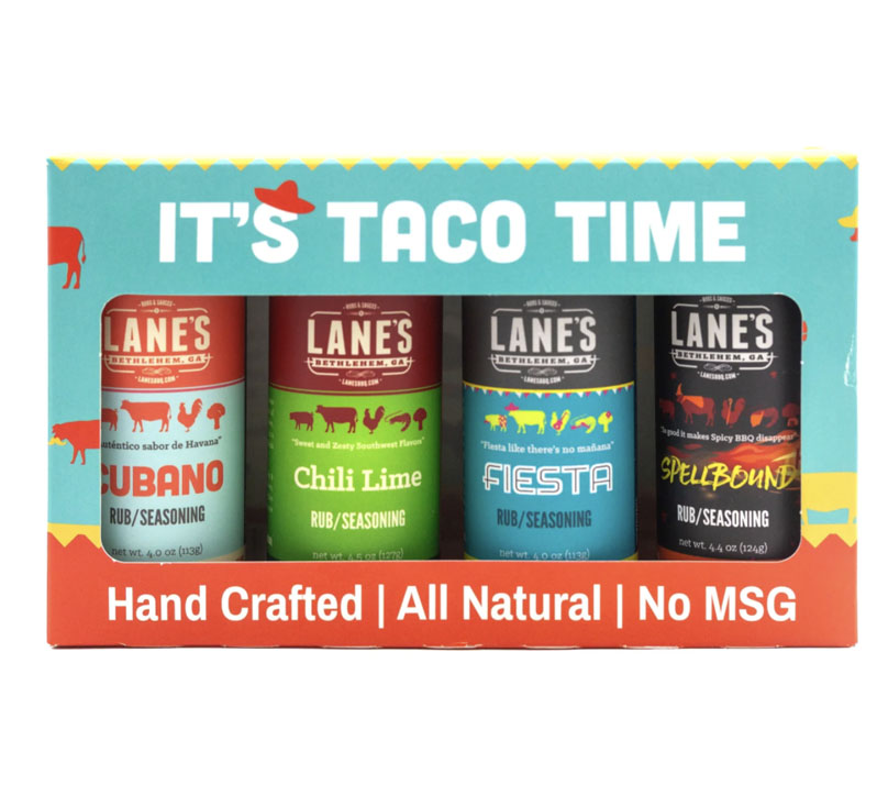This set removes guesswork from taco seasoning. Lane’s BBQ It’s Taco Time! – 4pk Rub Set lets you match the right rub to beef, chicken, pork, seafood, or veggies. The flavors layer well and perform across grilling, skillet cooking, and slow cooking.