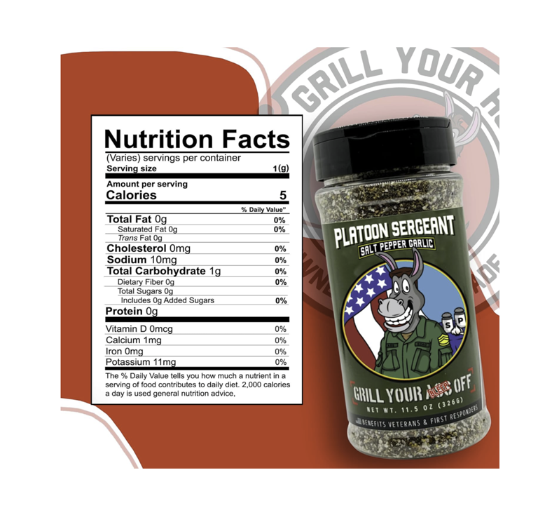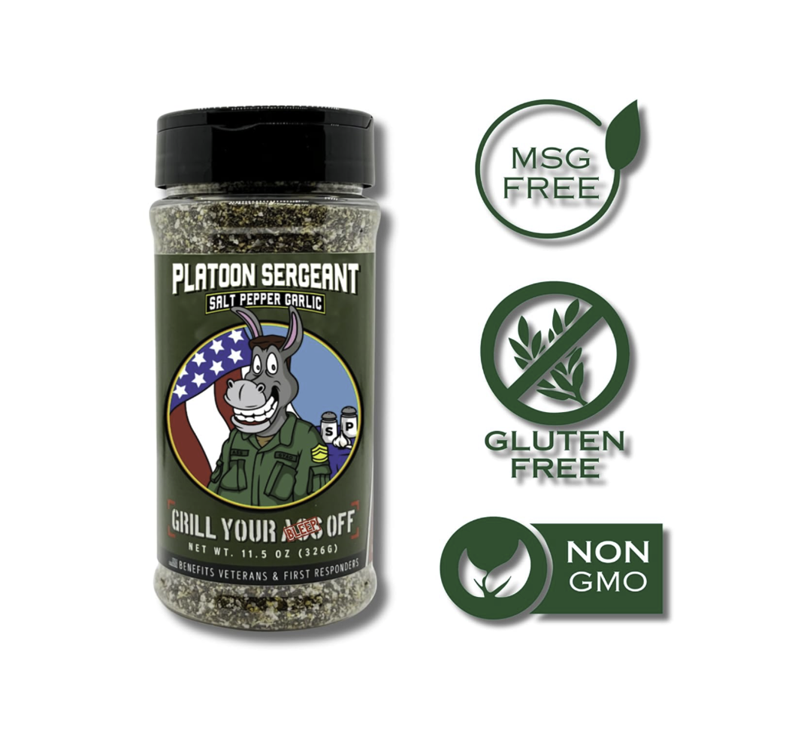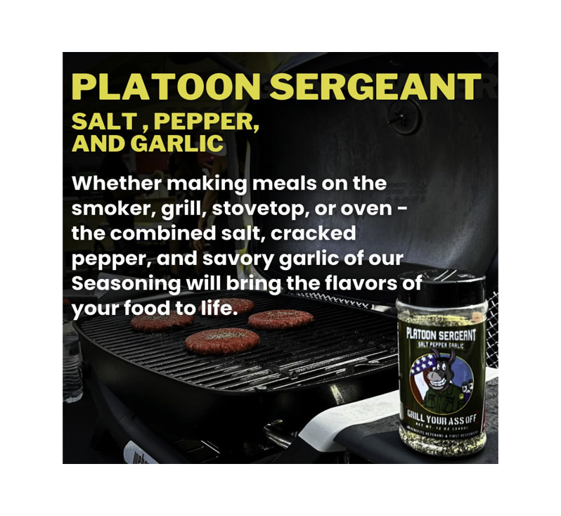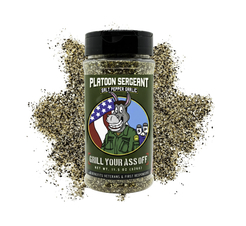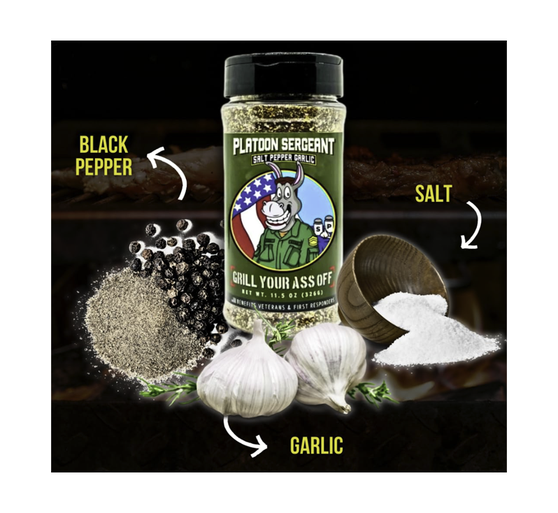 Platoon Sergeant SPG Seasoning blends salt, pepper, and garlic for bold, simple flavor. Perfect for grilling, smoking, and everyday cooking, it enhances meats and vegetables with ease.